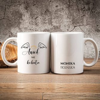 Kubek z nadrukiem ANIOŁ NIE KOBIETA + IMIĘ prezent DLA NIEJ