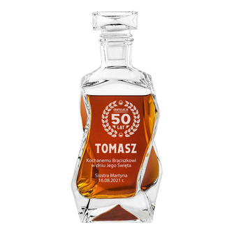 Personalizowany zestaw do whisky – karafka i szklanki z grawerem na 50-tkę