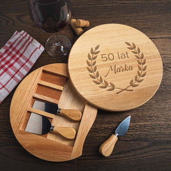 Deska z nożami do serwowania serów z grawerem na prezent z okazji 50 URODZIN