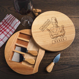 GRAWEROWANA deska do serów z nożami PAN I WŁADCA WSZECHŚWIATA + IMIĘ na IMIENINY URODZINY