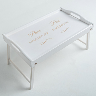 Stolik śniadaniowy z grawerem DLA PARY – prezent NA ROCZNICĘ ŚLUB I ŚWIĘTA