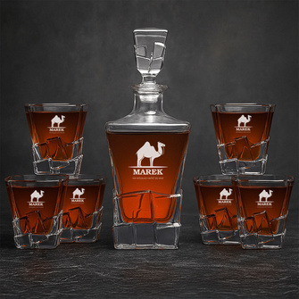 Zestaw Karafka + 6 Szklanek i Skrzynka z grawerem DLA MYŚLIWEGO