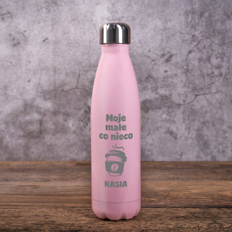 Butelka termiczna różowa z grawerem DLA KAWOSZA - MOJE MAŁE CO NIECO