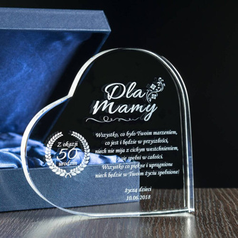 Kryształowa statuetka serce 3D z grawerem pary na podstawce LED – ekskluzywny prezent ślubny